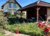 Na pozemku sa nachádza prístrešok pre 1 auto o výmere cca 15 m2 a drevený altánok. Okrasné dreviny a dostatok priestoru na úžitkovú záhradu, bazén, tenisový kurt. V závislosti od požiadavky nového majiteľa.