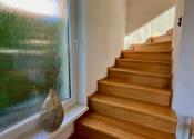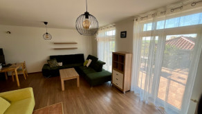 Dispozícia: priestranná vstupná chodba so vstavanou skriňou, samostatná toaleta, kuchyňa s jedálenským kútom. Priamo oproti vstupným dverám je obývačka s výstupom na veľkú terasu, ktorá vedie priamo do krásnej záhrady. Na poschodí sa nachádzajú 3 spálne, kde jedna je s veľkým balkónom, samostatné WC a kúpeľňa s vaňou a výstupom na balkón.