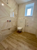 Celý dom prešiel kompletnou rekonštrukciu približne 1,5 roka nazad, kde 1. poschodie je už dokončené okrem kuchynskej linky, ktorú si môže budúci majiteľ vybrať podľa vlastného vkusu. (poznáme skvelých stolárov za rozumnú cenu). Rovnako sú vymenené všetky okná za plastové, nové sieťky, podlahy, nová kúpeľňa so sanitou, stierky a podobne. Suterén aj so schodiskom je v štádiu rekonštrukcie. Steny sú predpripravené na nové stierky, podlahy je potrebné vyliať betónom, stropy a celý suterén je pripravený na dokončenie, s odhadovanou cenou cca 25.000 €. Dom bol kompletne obkopaný a odizolovaný, nové ríny a zvody sú zakúpené, už v cene pripravené pre nového majiteľa. Zámerom kompletnej rekonštrukcie domu bolo vytvoriť 2-generačný dom, prípadne vytvoriť 2 samostatné bytové jednotky, čo sa aj podarilo. Do suterénu vedie samostatný vstup cez bočné dvere, ale rovnako aj schodisko z 1.poschodia domu, ktoré je možné v prípade záujmu o samostatné bytové jednotky úplne uzatvoriť.