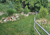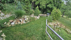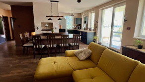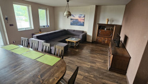 Materiál: Dom bol skolaudovaný v roku 2019, postavený z PORFIXU a prízemie zo železobetónu. Strecha sedlová TERRAN. V dome sú plastové okná – 3 sklo, 3komorové. Pripojený je na všetky inžinierske siete vrátane kanalizácie + studňa. Internetové pripojenie - Nevernet. Zastavaná plocha domu je 186 m2, je dvojpodlažný s veľkou terasou z obývačky, z ktorej je možné spraviť nadštandardnú zimnú záhradu, prípadne v prípade potreby ďalšiu izbu. Dom je nízkoenergetický, čo zabezpečuje nízke mesačné náklady, maximálne do výšky 150 €. Na pozemku je prístrešok a spevnené plochy na parkovanie pre ďalšie autá. Odhadom možnosť parkovania približne pre 8 áut. K domu vedie súkromná cesta, ktorá patrí iba 3 domom, z ktorých najďalej, so súkromím v srdci prírody je tento konkrétny. Pri prvom vstupe je brána na diaľkové ovládanie, ktorú vlastnia 3 vlastníci a samostatný vstup je na pozemok, ktorý patrí iba k tomuto rodinnému domu ku ktorému vedie veľká, samostatná brána na diaľkové ovládanie.