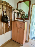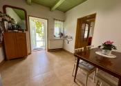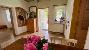 Ponúkame na predaj 3-izb. rodinný dom s rozlohou cca 110 m2, ktorý sa nachádza v obci Veľký Lapáš a stojí na veľkorysom pozemku o veľkosti 2750 m2. Dom napriek tomu, že je starší je zdravý a pôsobí veľmi útulne. Bol postavený v roku 1940 z nepálenej tehly, čo znamená, že si krásne drží teplotu a cez leto je v ňom veľmi príjemne. Je ihneď obývateľný, ale po rekonštrukcii z neho môže byť krásne bývanie v tichom prostredí iba na skok od Nitry. Zdobia ho pôvodné drevené trámy v kuchyni a v obývačke. Dispozícia: vstup do domu – kuchyňa, naľavo spálňa, z pravej strany obývacia izba z ktorej sa ide do druhej spálne, kúpeľňa s vaňou a WC. Vstupuje sa cez romantickú verandu lemovanú viničom. Na pozemku sa nachádza záhradný domček, ktorý slúži ako letná kuchyňa s dreveným altánkom a ďalší záhradný domček s vínnou pivnicou. Oba sú pripojené na elektrinu. Tiež množstvo ovocných stromov, kríky, vinič, ktorý krásne lemuje dom a dotvára romantickú atmosféru. Dom je pripojený na IS: elektrina, obecná voda, plyn a odpad je riešený žumpou. Na pozemku sa nachádza funkčná studňa. V každej miestnosti sú plastové okná, kúrenie je zabezpečené radiátormi, plynový kotlom zn. PROTHERM. Obec Veľký Lapáš je veľmi dobre vybavená, nachádza sa tu ZŠ, MŠ, športové ihrisko, obecná knižnica, zdravotné stredisko, pošta, matričný úrad, potraviny, reštaurácie, cukráreň a podobne. Vzdialenosť Nitra – Veľký Lapáš je približne 8 km.