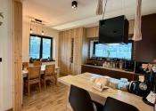 Kuchyňa je kompletne zariadená a vybavená spotrebičmi – umývačka riadu, chladnička, mraznička, dostatok úložného priestoru a praktická komora.