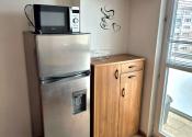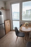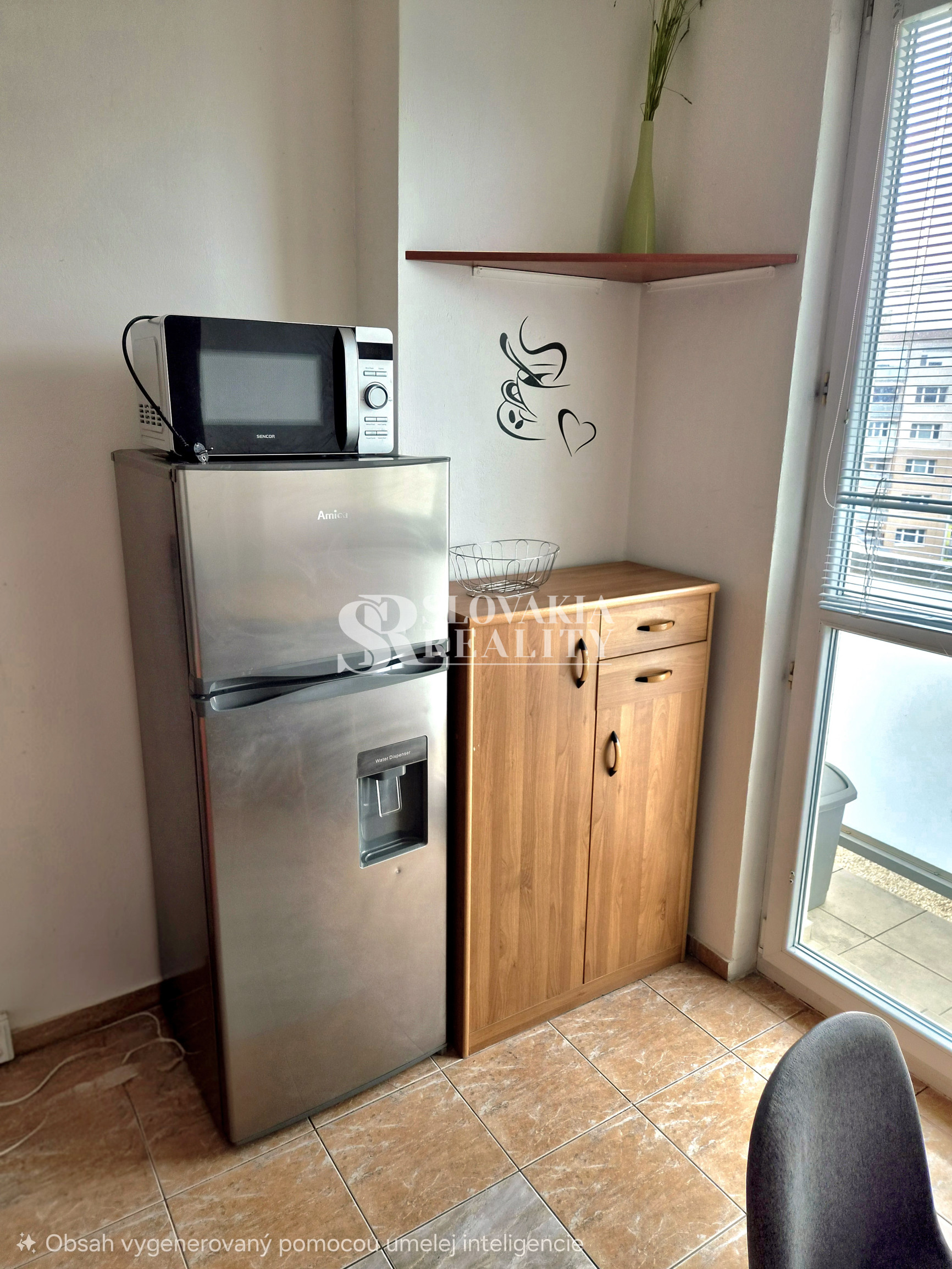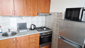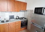 Kuchyňa je vybavená kuchynskou linkou a základnými spotrebičmi – plynovým sporákom s elektrickou rúrou a chladničkou. Z kuchyne je výstup na lodžiu.