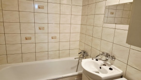 Byt disponuje plastovými oknami (so žalúziami), upravenými podlahami a kúpeľňou s vaňou, ktorá je obložená dlažbou. Toaleta je samostatná, v pôvodnom stave. Veľkým benefitom je vstupná chodba so vstavanou skriňou, ktorá poskytuje dostatok úložného priestoru.