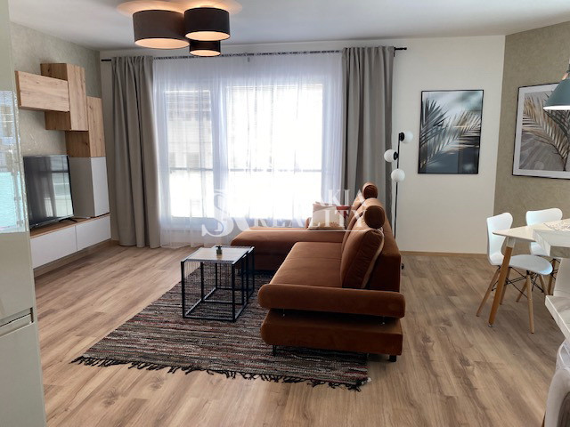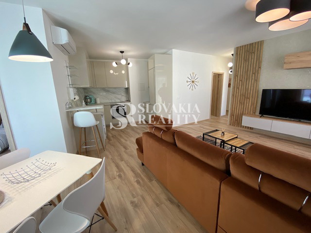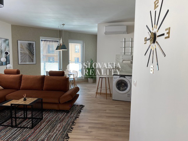 Byt je klimatizovaný, dizajnový a novo-zariadený kvalitným nábytkom.